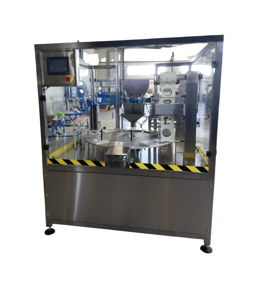 Το σύνολο της μηχανής είναι κατασκευασμένο από ανοξείδωτο ατσάλι και ανοδιωμένο αλουμίνιο εξαιρετικής αντοχής. Προσαρμόζονται όλα τα συστήματα γεμίσματος όπως ζυγιστικό από δυο κεφαλές έως και πολυκέφαλο, ογκομετρικό, μετρητικό, δοσομετρικό για προϊόντα σε σκόνη και υγρά.